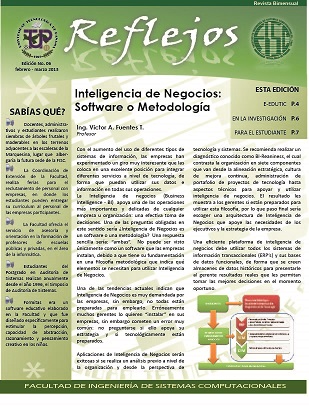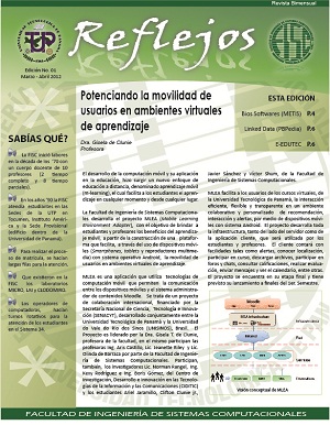 Reflejos - Edición No. 1 - Marzo - Abril 2012 Las tecnologías de la información han moldeado una sociedad a la que denominamos como la sociedad del conocimiento. Dentro de la misma es esencial informar, las estructuras de comunicación que soportan esta nueva sociedad facilitan que esta acción ocurra de manera natural y por múltiples medios. Hoy deseamos brindar a la comunidad universitaria en general y a la Facultad de Ingeniería de Sistemas Computacionales, en particular, un medio a través del cual informemos sobre el desarrollo de la tecnología y el quehacer académico, de investigación y extensión que dentro de la Facultad se lleva a cabo, entendiendo que la Facultad somos todos los que a ella pertenecemos en todo el país: Reflejos Dr. Nicolás Samaniego Decano |