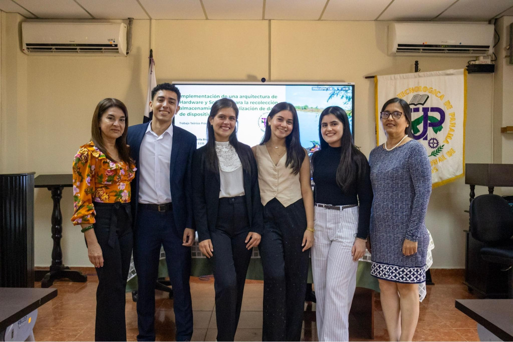 Los estudiantes Amelia Margarita Brugiati Madrid y Marvin Xavier González Caballero, de la Licenciatura en Ingeniería de Sistemas y Computación del Centro Regional de la Universidad Tecnológica de Panamá (UTP) en Veraguas, realizaron la sustentación de su trabajo de fin de carrera titulado “Implementación de una arquitectura de hardware y software para la recolección, almacenamiento y visualización de datos de dispositivos IoT”. La sustentación se realizó el 18 de noviembre de 2025 en el Salón Galo Chang.