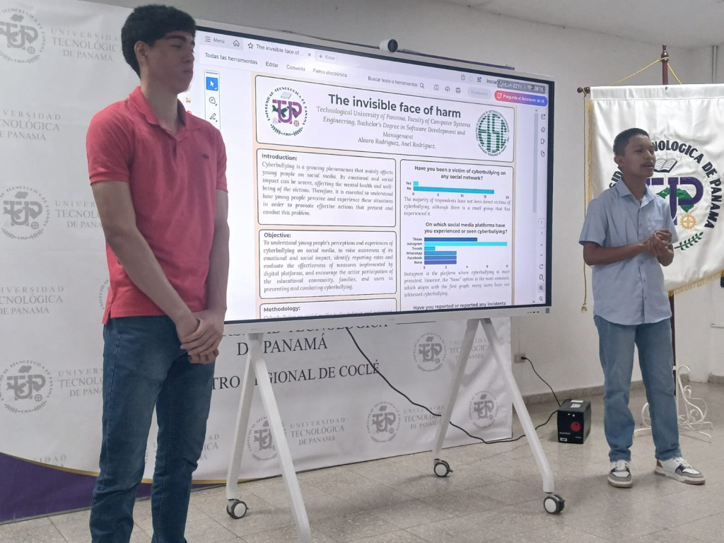 En el Centro Regional de la Universidad Tecnológica de Panamá (UTP), en Coclé, se vivió una experiencia académica que rompe esquemas tradicionales. Bajo la guía de la profesora Lilisbeth Loaiza, los estudiantes de primer año de la Licenciatura en Desarrollo y Gestión de Software de la Facultad de Ingeniería de Sistemas Computacionales (FISC), participaron en una competencia de pósteres sobre un tema tan vigente como preocupante: el ciberbullying.